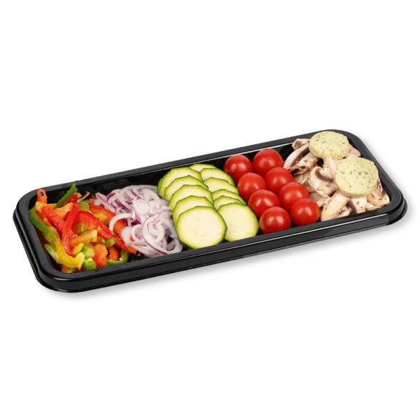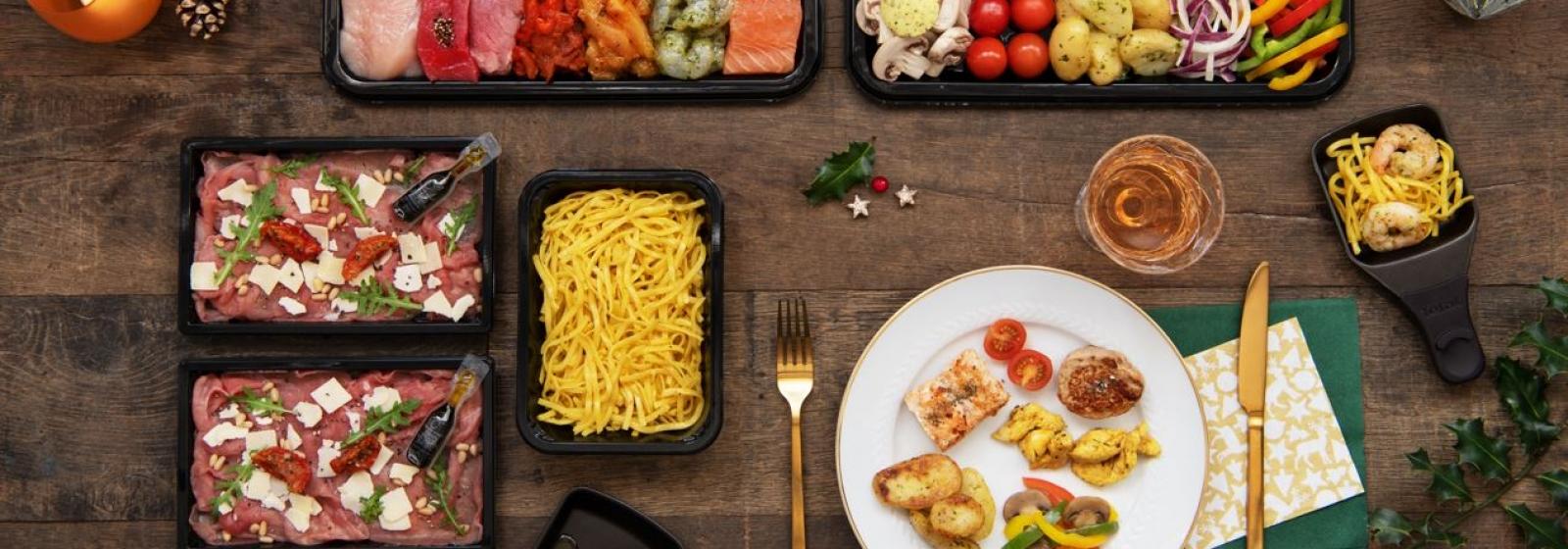 Zet daarna de teppanyaki-vlees-visschotel op de feesttafel