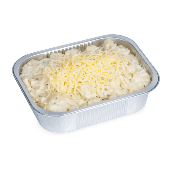 Ingrediënten | bloemkool 58%, MELK, EMMENTALER 9%, BOTER, TARWEbloem, ui, zout, maltodextrine, suiker, glucosestroop, peterselie, koriander, komijn, peper, fenergiek, gember, chili, foelie, kardemom, nootmuskaat, piment, aroma's, specerijen, conserveermiddel (E202, E211), zuurteregelaar (E262, E330), antioxidant (E301), voedingszuur (E330) |