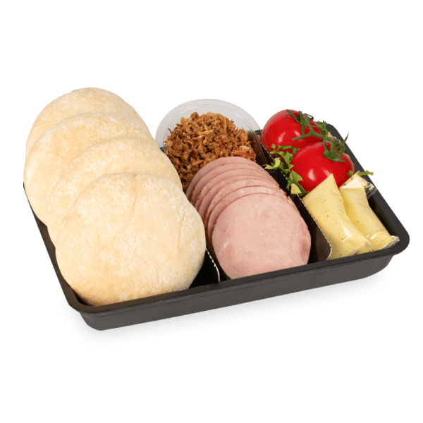 Ingrediënten ovenbroodje 31% (TARWEbloem, water, gist, ROGGEbloem, zout, TARWE, meelverbeteraar (E300), TARWEmoutmeel), varkensvlees 28%, tomaat, gefrituurde uitjes (ui, palmolie, TARWEbloem, zout), MOSTERDvinaigrette (koolzaadolie, water, natuurazijn, suiker, franse MOSTERD (water, MOSTERDzaad, azijn, zout, kurkuma, natuurlijk kruidenaroma), dijon MOSTERD (water, MOSTERDzaad, azijn, zout, zuurteregelaar (E330), antioxidant (E224)), zout, EIgeelpoeder, ui, look, zuurteregelaar (E330), gemodificeerd zetmeel, conserveermiddel (E202, E270), aroma, peper, peterselie, verdikkingsmiddel (E412, E415), antioxidant (E385)), conserveermiddel (E250, E262), glucosestroop, aroma's (rook), gistextract, zout, stabilisator (E450, E451), antioxidant (E300, E301, E331), kleurstof (E150)