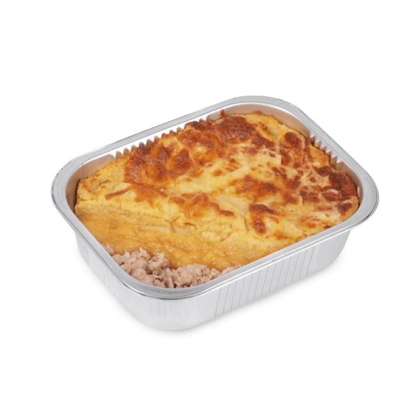 Ingrediënten | appelmoes 33% (appel, antioxidant (E300), voedingszuur (E330), zetmeel), varkensvlees 28%, aardappel 17%, KAAS 8%, MELK, BOTER, paneermeel (TARWEbloem, zout, gist), rundvlees 1%, zout, zuurteregelaar (E262, E331), antioxidant (E301), voedingszuur (E326, E261), voedingsvezel, specerijen, specerijextracten, gistextract, aroma), nootmuskaat aroma, rode bietensap |