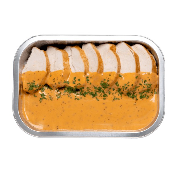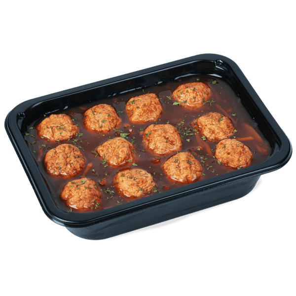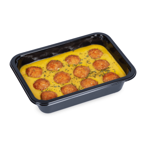 gebakken kippenballetjes (kip, varken), currysaus